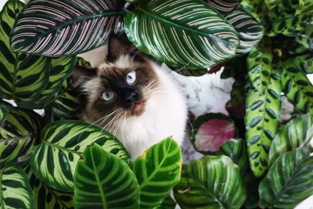 3. Calathea / Prayer Plant Family Known for their patterned leaves, these pet-safe indoor plants prefer medium indirect light and consistent watering. Non-toxic for cats, but best for owners comfortable with a bit of routine care